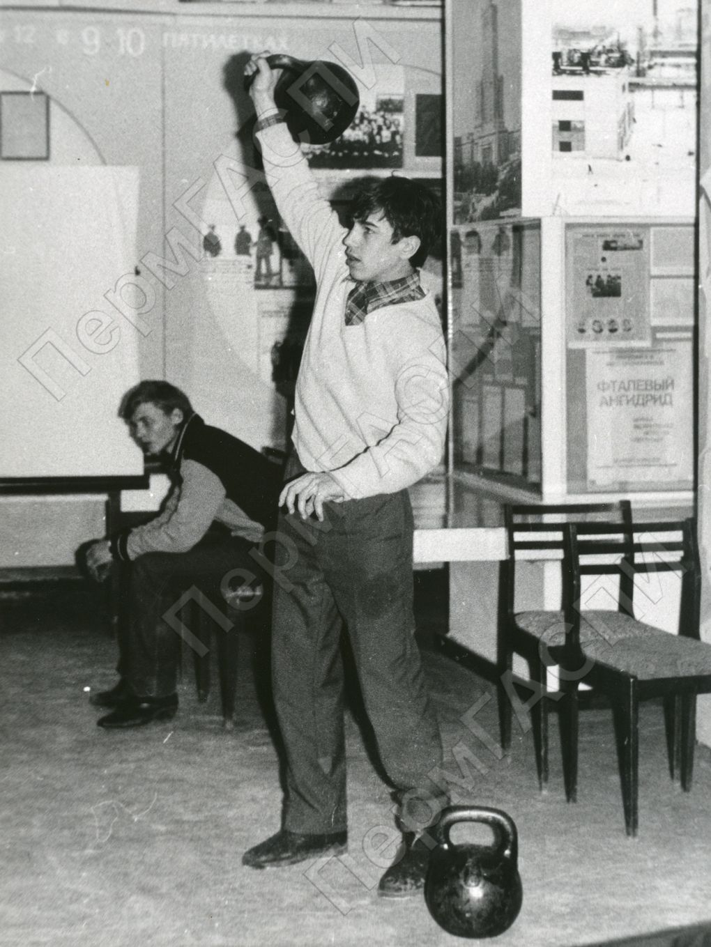 Тематический вечер "Проводы в СА". Призывник Иванов А. поднимает гири
