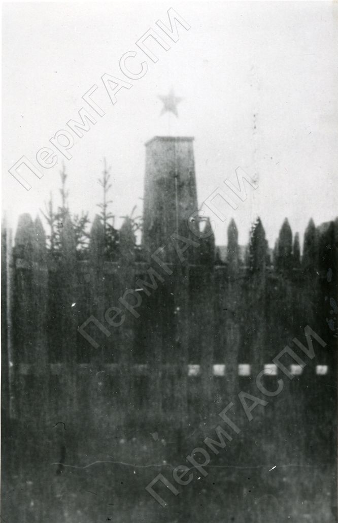 Старый памятник (в настоящее время заменен) на могиле красноармейца Ромодина Т. П. из заградительного кордона в п. Кутим Красновишерского района Пермской области, погибшего в июле 1918 года от рук белогвардейцев.