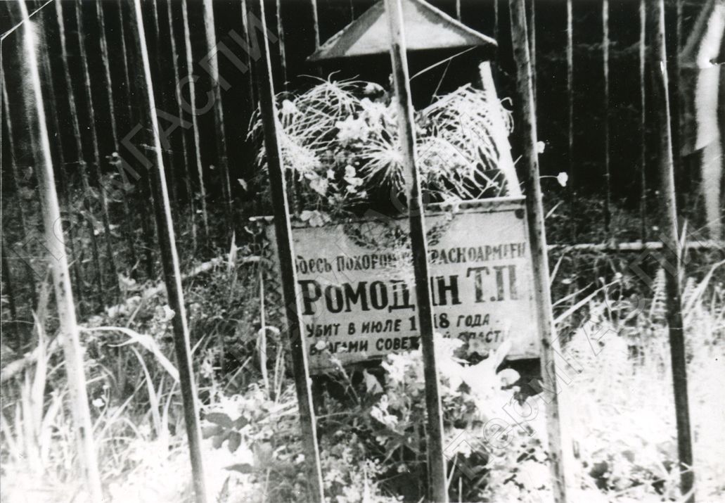 Новый памятник на могиле красноармейца Ромодина Т. П. из заградительного кордона в п. Кутим Красновишерского района Пермской области, погибшего в июле 1918 года от рук белогвардейцев.
