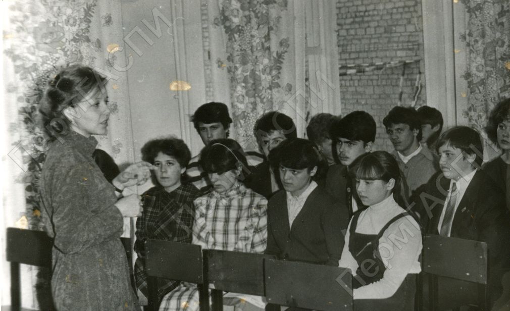 Городская школа комсомольского актива. Средняя школа № 9. Слева - секретарь по учащейся молодежи ГК ВЛКСМ Ганюшина Т. Ю.