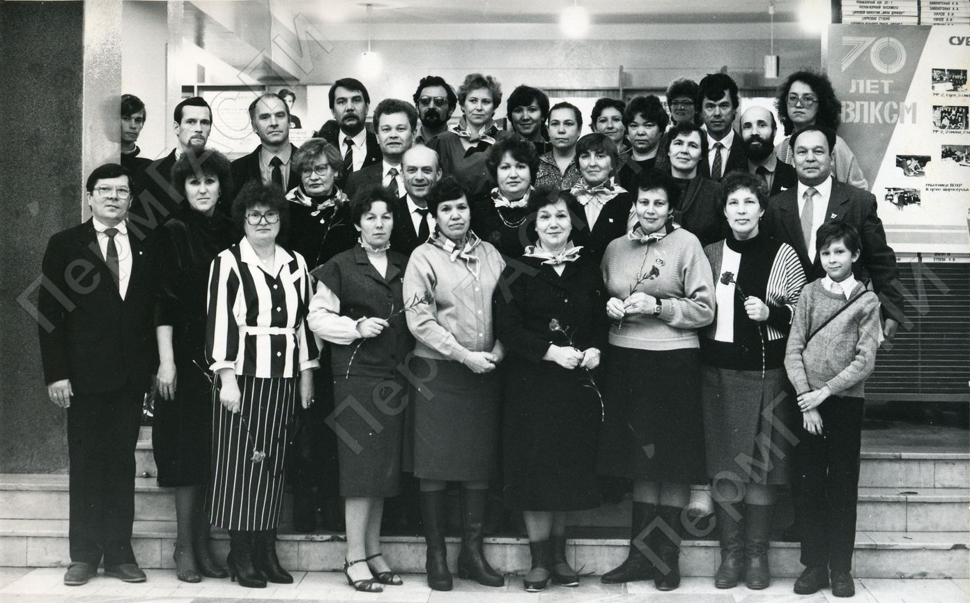 Комсомольский актив 70-х годов комбината шелковых тканей на встрече 70 лет ВЛКСМ.
