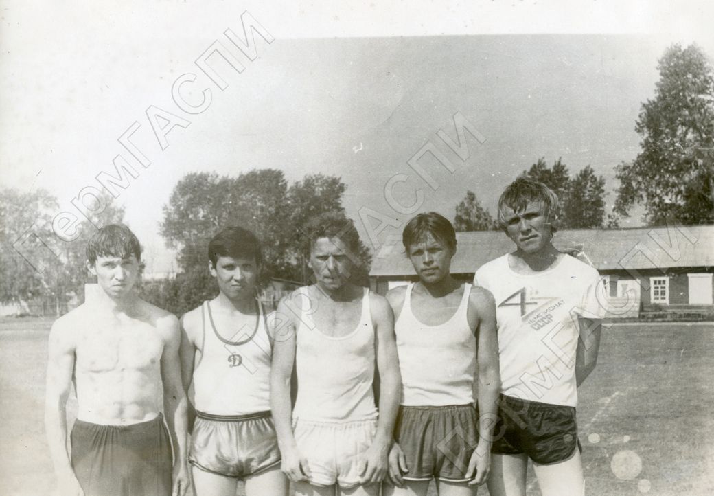 Спортивная команда Кудымкарского района. 2-й слева I екретарь горкома ВЛКСМ Лунегов Василий , 5-й секретарь совхоза "Деминский" Дровняшин Леонид