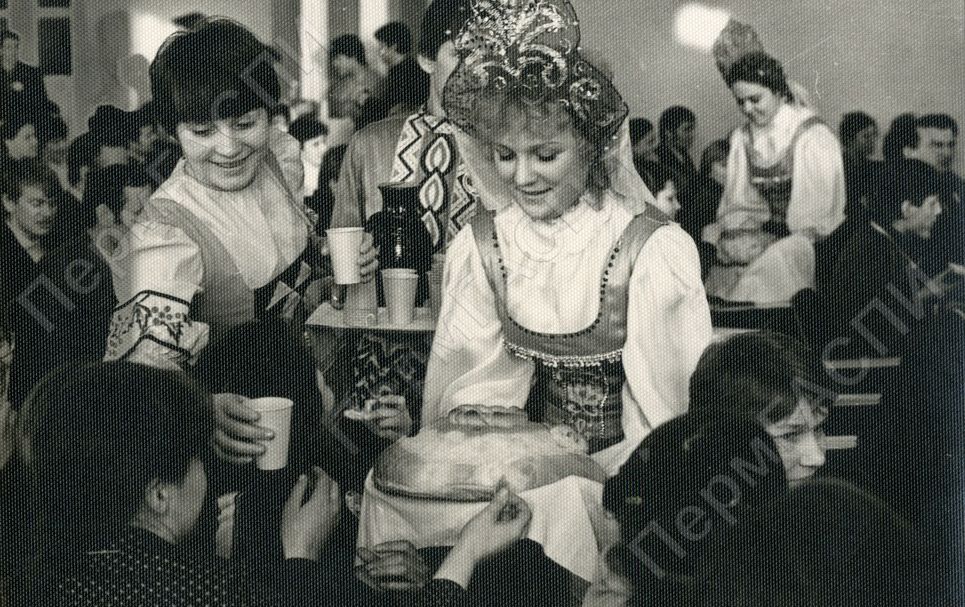 Приветствие хлебом-солью гостей собрания, посвященного 60-летию Коми-Пермяцкого автономного округа