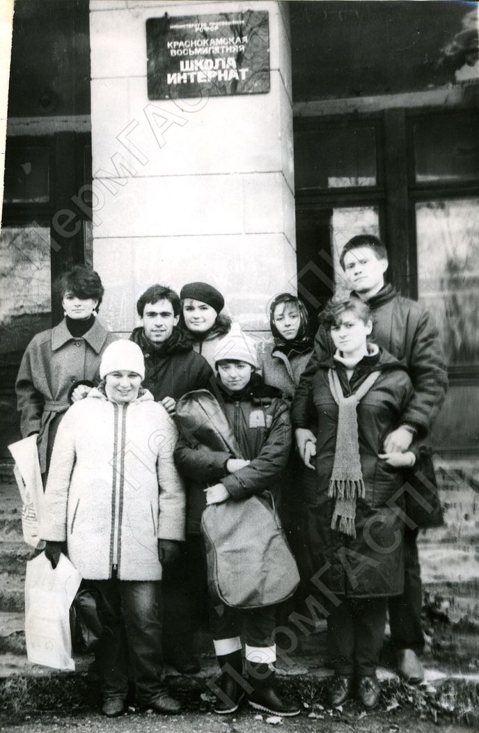 Агитбригада студенческого отряда проводников "Пилигрим" после шефского концерта в школе-интернате.