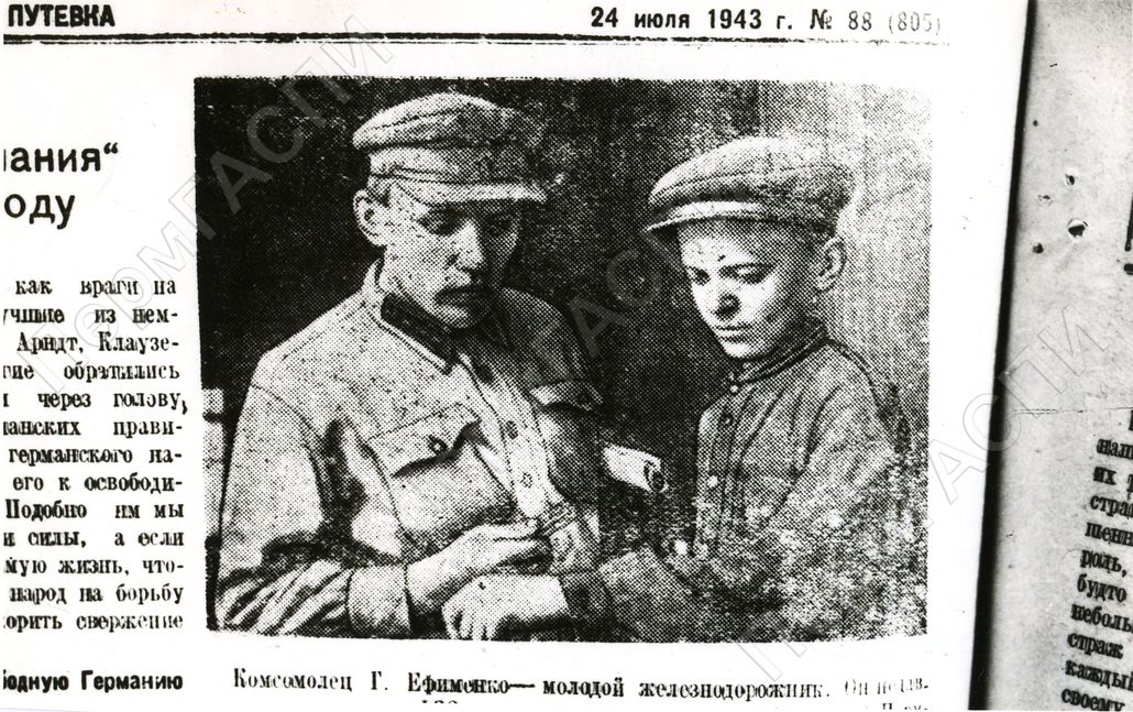 Газета "Путевка" от 24 июля 1943 года, где изображено работники дело. Вагонное депо.