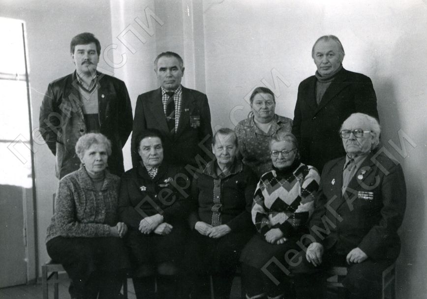 Совет ветеранов комсомола. Первый ряд (слева) Зубова А. Б. - председатель метод. совета комсомольской политики, Михальчук М. К. - председатель советаветеранов, Колеванова А. А., Никитина М. К., Ддумии Д. С. Второй ряд (слева) Найдамов А. Г. - второй секретарь ГК ВЛКСМ, Гулько В. Т. - председатель ГК ДОСААФ, Леднева А. Е. секретарь совета, Голоденко Ю. М.
