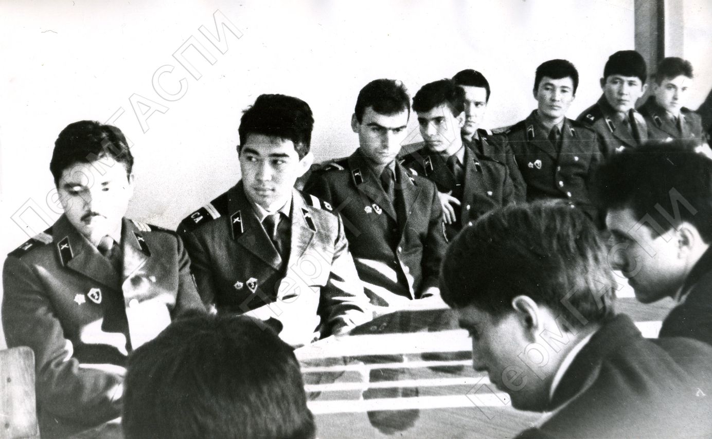 Встреча секретарей горкома ВЛКСМ с военами-ракетчиками. Зал заседаний горкома партии.