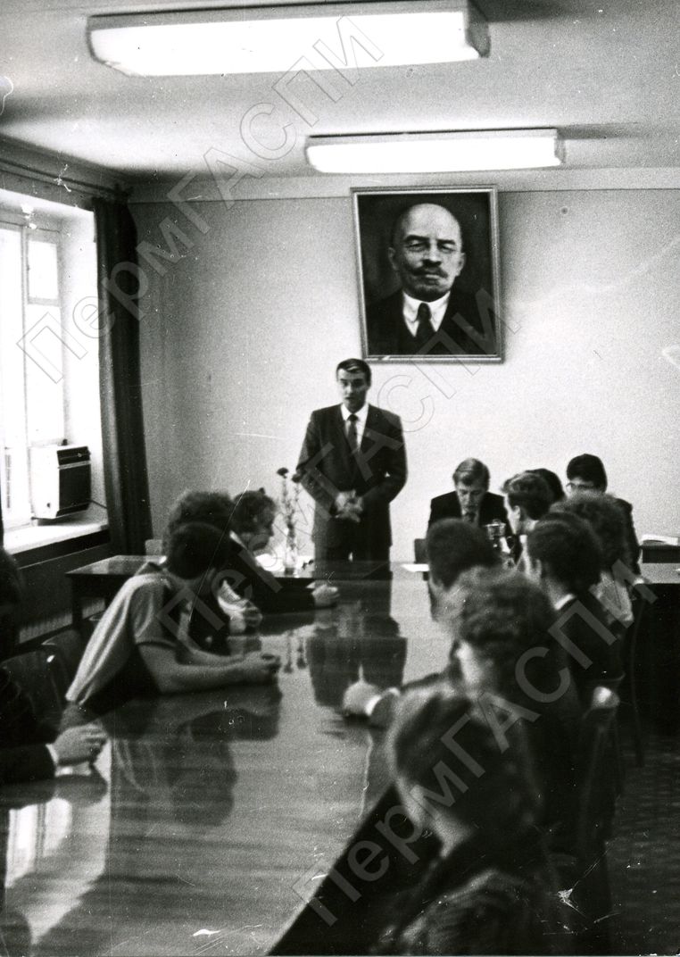 Встреча секретаря горкома КПСС Васильева Сергея Волерьяновича с комсомольцами, чьи портреты занесены на доску почета.