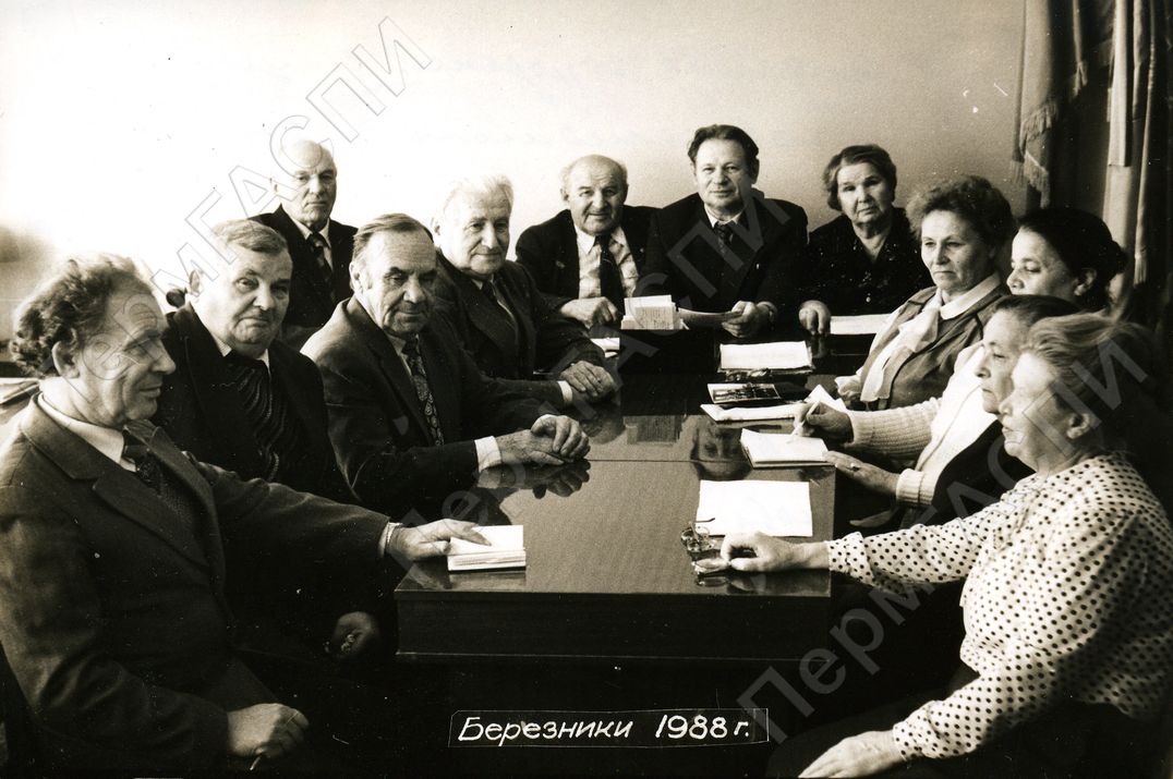 Очередное заседание городской секции ветеранов Ленинского комсомола. Кабинет первого секретаря ГК ВЛКСМ. (слева направо) Посудин В. П., Мажуров Т. А., Тибелиус Р. Х., Коновалов К. И., Казаневич В. И., Коитенко М. А., Шалахин Н. Н., Дыблина А. А., Дьякова Е. А., Антонова Е. И., Хлыпенко Т. И., Сальникова Е. А.