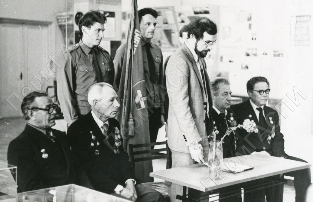 Всесоюзная акция "Равнение на знамена Победы". Передача знамени 1194-го стрелкового полка комс. орг-ии ПГПИ комс. орг-ии ПОМЗиОР. Выступает секретарь комитета комсомола ПО Машзавод им. Октябрьской революции Седельников А.Л.