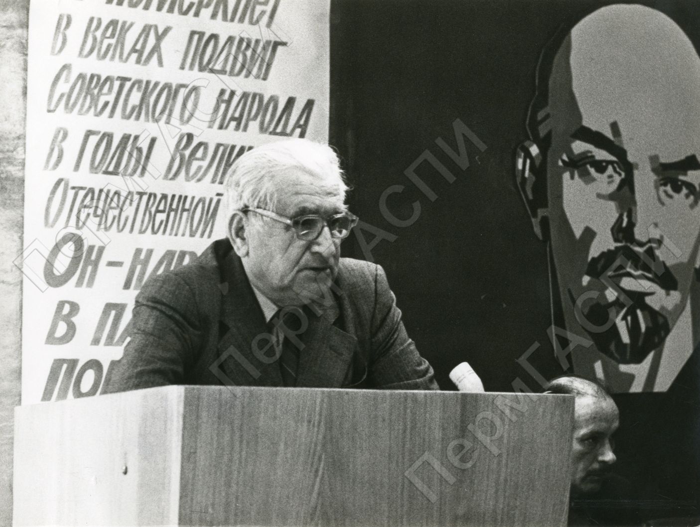 Собрание комсомольского актива ПО "Уралкалий" "Навечно в памяти народной". Выступает председатель Совета ветеранов Ленинского комсомола Казакевич Владимир Игнатьевич