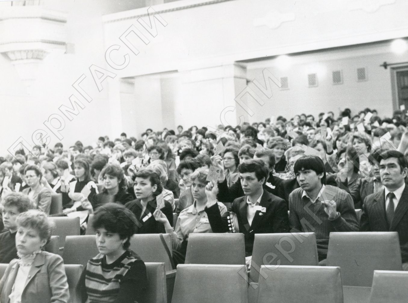 Голосование делегатов I-й выборной комсомольской конференции Ленинского района. ДК Энергетиков