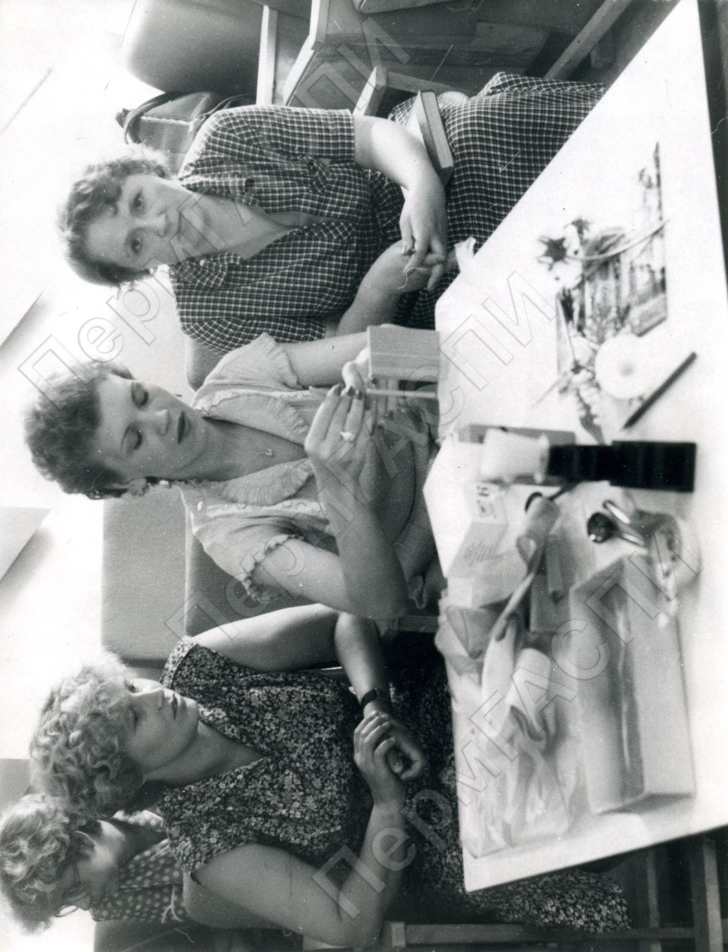 Конкурс профмастерства среди продовцов. Подарок оформляет Николаева Екатерина. ЦУМ, красный уголок. (слева направо) Мезенцева Н., Николаева Е., Тарашкевич Л. А.
