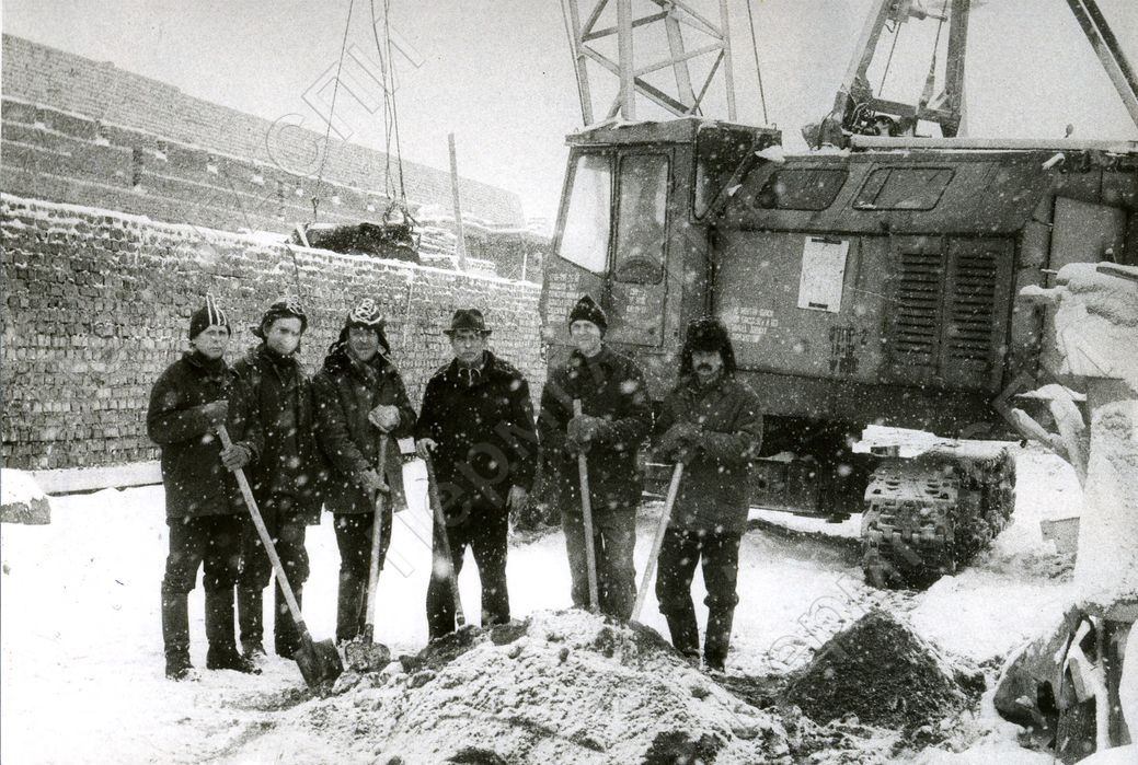 Бригада строителей Локомотивного депо Перми-II на коммунистическом субботнике, четвертый слева главный инженер Локомотивного дело Пермь-II Ильченко В. В.