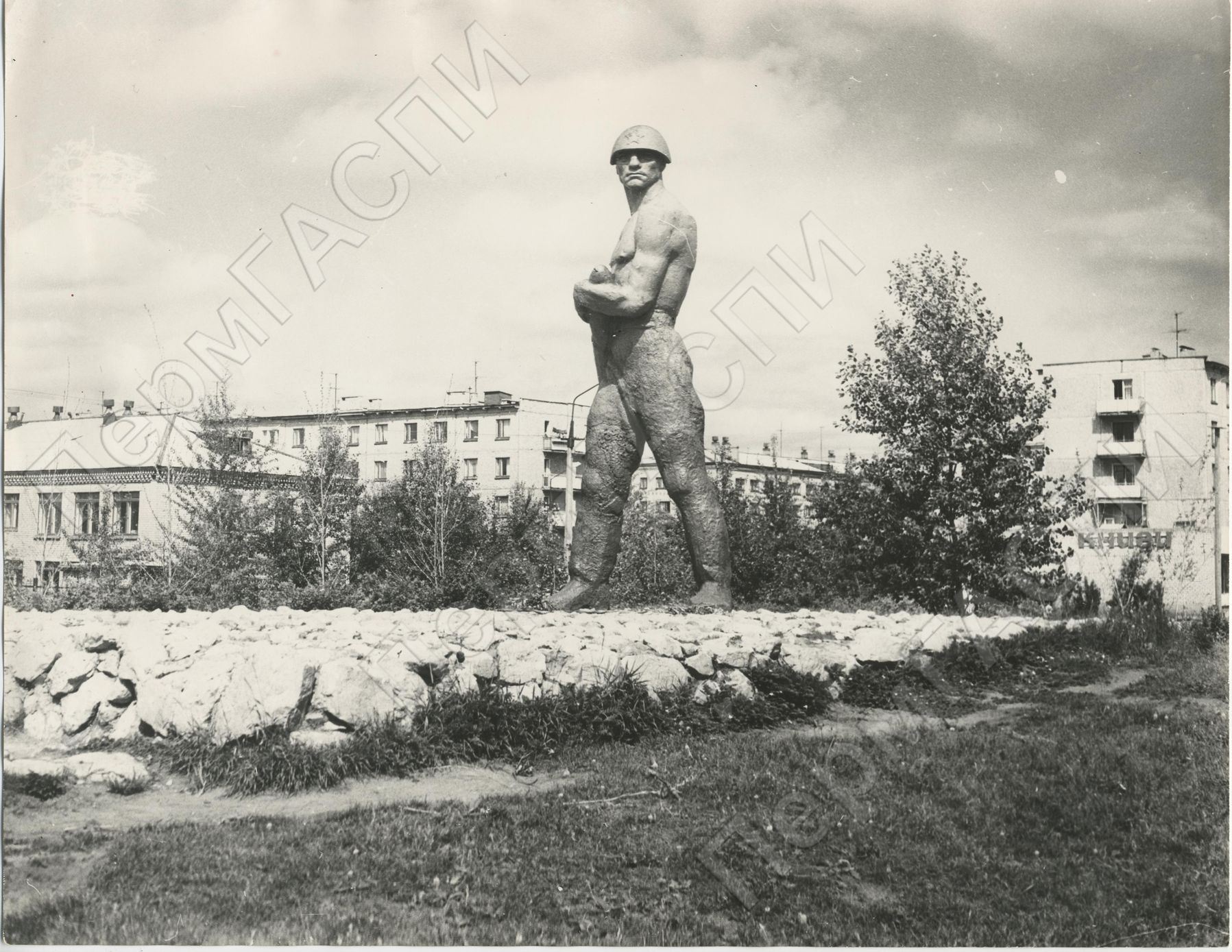 Памятник Герою Советского Союза Николаю Ладкину, геройски погибшему в годы Великой Отечественой войне. Его имя навечно записано в списки комсомольской организации бумцеха №3. Площадь Ленинского Комсомола.