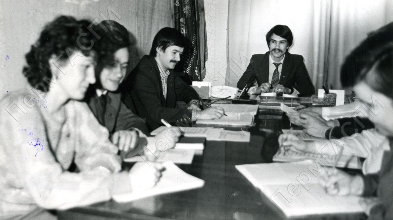 Заседание комитета ВЛКСМ. Комитет ВЛКСМ. ПО "Машзавод им. Октябрьской революции". Староверова Светлана - зам. секретаря по оргработе Стариков Андрец - зам. секретаря РК ВЛКСМ Золотухин Сергей - зам. секретаря ЗК ВЛКСМ по производству Соколов Геннадий - секретарь ЗК ВЛКСМ