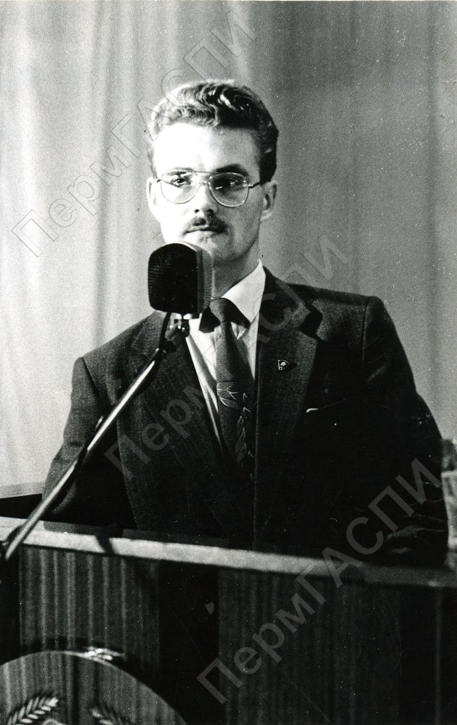 Конференция по выборам секретаря комитета ВЛКСМ ПО "Уралкалий". Кандидат на должность секретаря комитета ВЛКСМ Ябуров Виктор - секретарь комитета ВЛКСМ Первого рудоуправления. ДК "Калийщик".