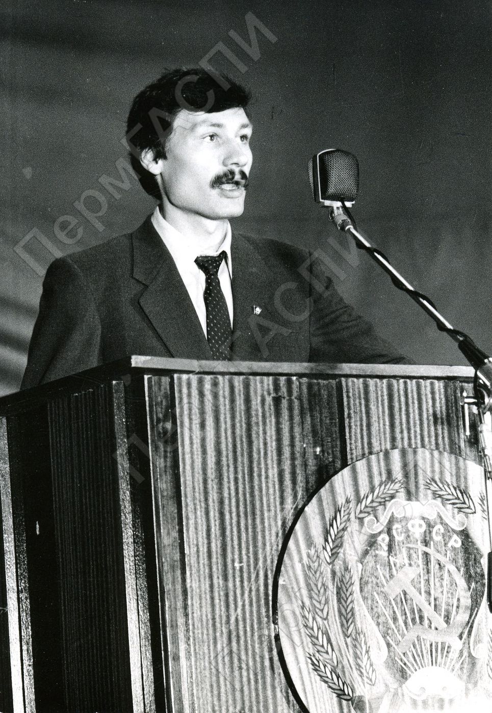 Конференция по выборам секретаря комитета ВЛКСМ ПО "Уралкалий". Кандидат на должность секретаря комитета ВЛКСМ Лаптев Евгений - зам. секретаря комитета ВЛКСМ по идеологической работе. ДК "Калийщик".