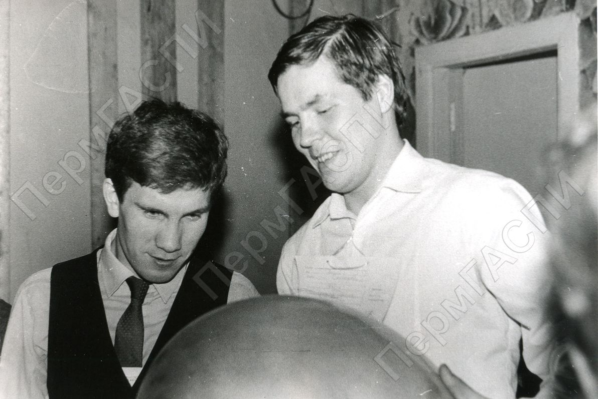 Семинар комсомольского актива. Дом отдыха "Новоильинский" Нытвенский район. Учасники семинара (слева направо): Абрамов Игорь - член Заводской Комитет ВЛКСМ,Тиунов Андрей - комсорг цеха №3.