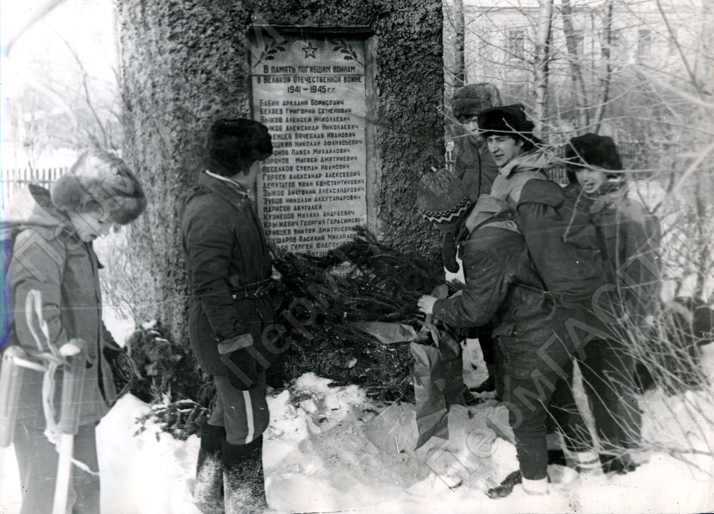 Группа Поиск мотороконструкторского бюро возлагает венок к памятнику погибшим воинам. Лыжный поход по местам боевой и трудовой Пермской области.