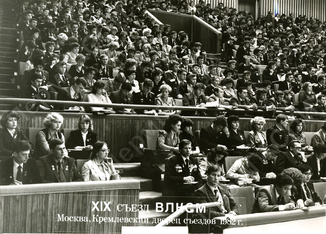 XIX съезд ВЛКСМ. Кремлевский дворец съездов. Слева за барьером 2-й ряд 3-я слева - Васянина Татьяна Ивановна, делегат от Еловской районной комсомольской организации.