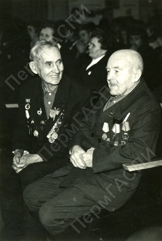 Встреча с участниками Великой Отечественной войны и ветеранами труда. Районный дом культуры. Лунегов Илья Алексеевич и Никифадов Иван Николаевич.