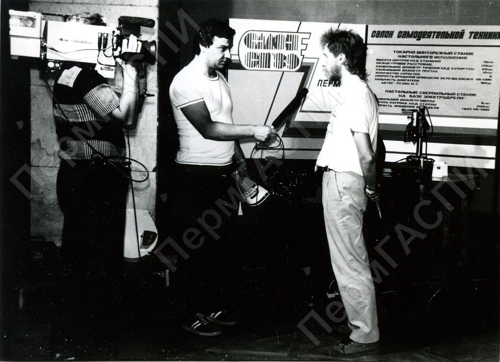 Салон самодеятельной техники, проводимый центром НТТМ "905". На снимке работник центра дает интервью для передачи "Пермь Вечерняя". ВЛНХ.