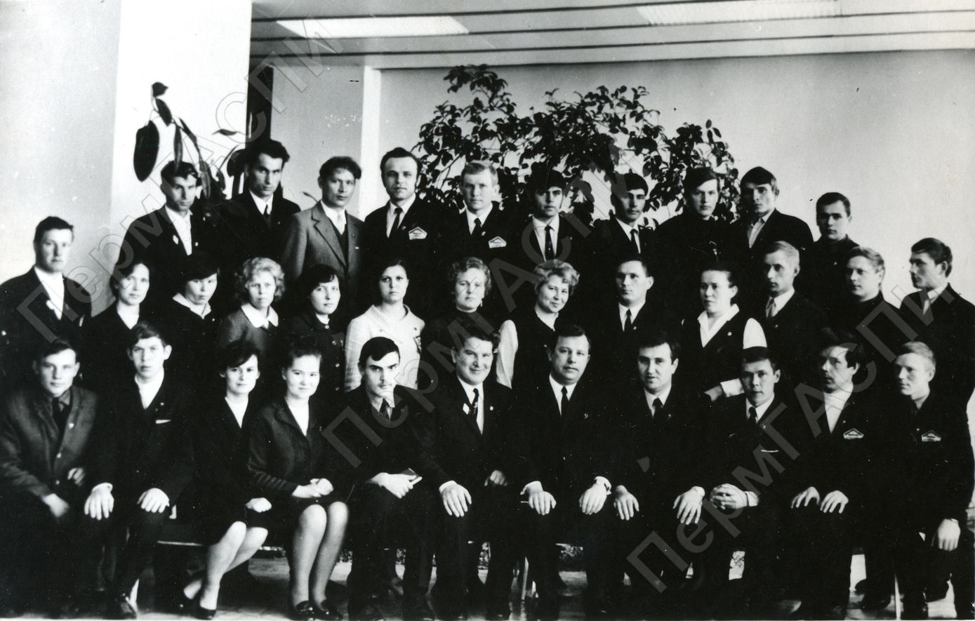 Делегаты областной отчетно-выборной комсомольской конференции от Коми-Пермяцкого национального округа. В первом ряду сидят 4-ая слева - Чугайнова Таисия Михайловна - инструктор ОК ВЛКСМ; 5-ый слева - Хозяшев Александр - ученик 9 класса школы №2 - отличник учебы; 6-ой слева - Сидоров Н. Г. - I секретарь Кудымкарского ГК ВЛКСМ; 8-ой слева - Зубов Ю. П. - I секретарь Коми-Пермяцкого.ОК ВЛКСМ. В третьем ряду 4-ый слева - Томилов В. И. - I секретарь Юсьвинского РК ВЛКСМ.