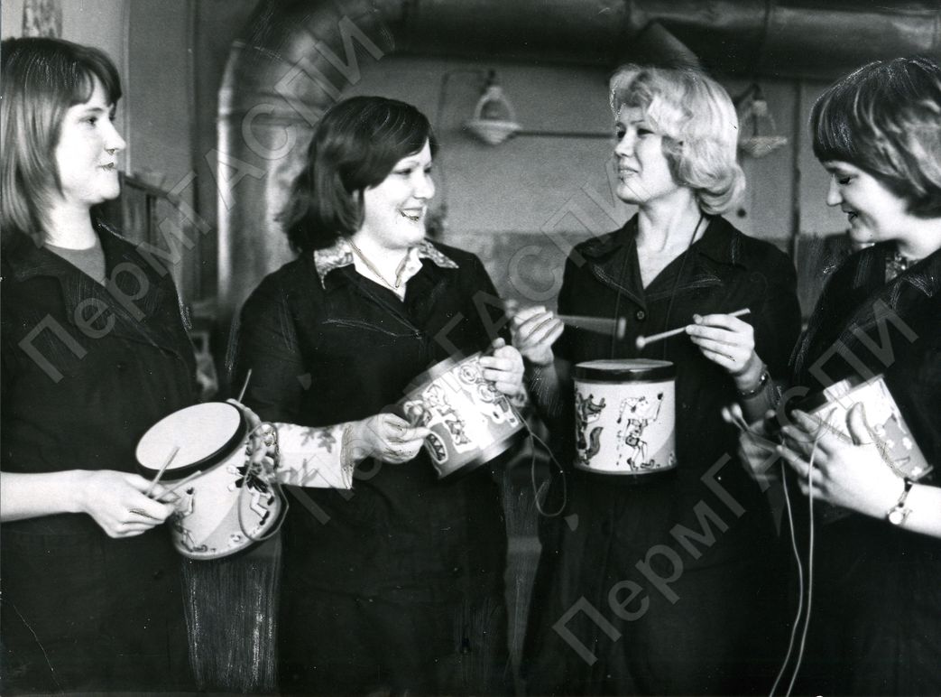 Бригада сборщиц Людмилы Стрельченко состоит из 8 человек. Четыре коммуниста и четыре комсомольца. За победу в социалистическом соревновании за 1977 год этому коллективу вручен вымпел победителя во Всероссийском социалистическом соревнований, присужденной Коллегией Министерства местной промышленности. Бригада стала победителями заводского соревнования за первый квартал 1978 года. На снимке: члены комсомольско-молодежной бригады Людмилы Стрельченко с Губахинского завода игрушек "Смена". Слева направо: бригадир Л. Стрельченко, Г. Агафонова, Д. Гаряева и Т. Мулявина.