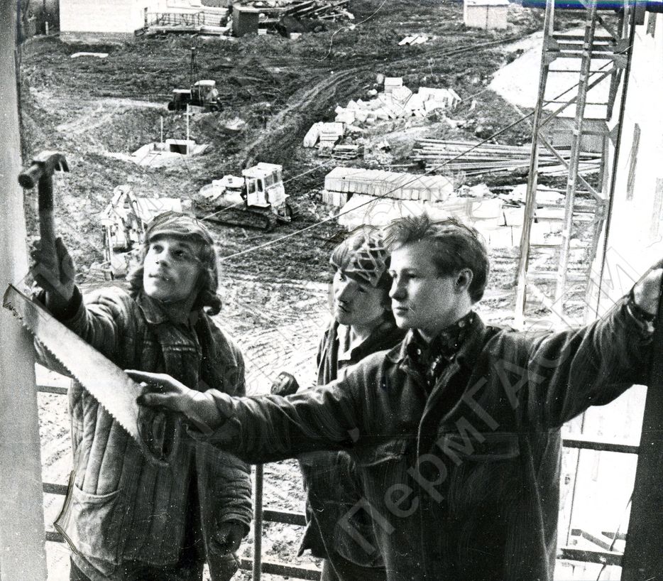 Комсомольско-молодежная бригада плотников СМУ-6 треста №14 Леонида Морозова, бригаде присвоено звание коллектива имени XVII съезда ВЛКСМ.