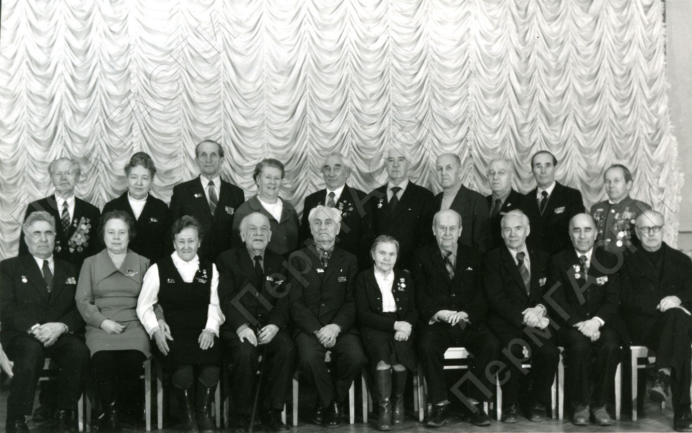 Областное отчетно-выборные собрание ветеранов комсомола Прикамья. 1 ряд: 1) Пичнин А.Ч., 2) Яблочкова Е. С., 3) [Постникова Ф. Ф.], 6) [Минсорова А. Ч.], 7) Анисимов В. М., 8) Черномырдин. 2 ряд: 1) Бабинцев А. В. 3) [Енульцев А. Г.], 5) Петропавловский, 8) Костюковский А. А., 9) Шевшуков Г. Ч., 10) Попов И. М.