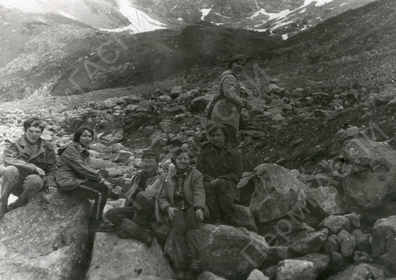Студенты университета - туристы клуба "Подснежник" на привале во время похода по местам боевой славы. Центральный Кавказ.