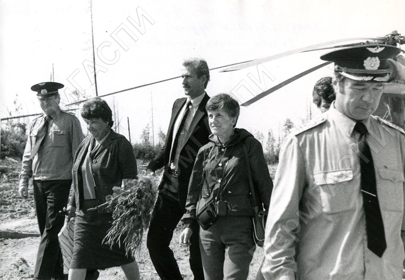 На месте приземления космического корабля "Восход" в 50 км от города Березники. 2-я слева - жена космонавта Беляева А. А.