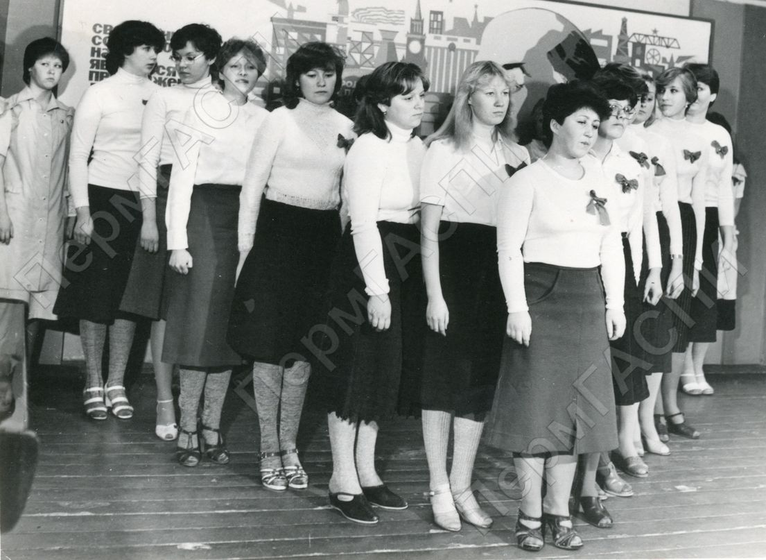 Конкурс политической песни и плаката на втором курсе в СПТУ-87. Выступает группа парикмахеров