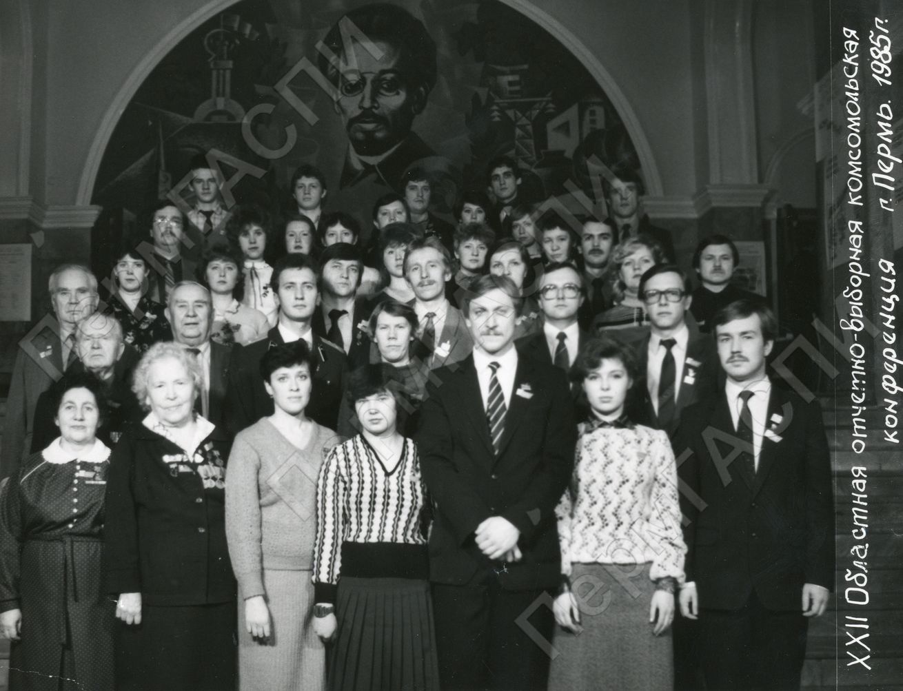 Делегация Мотовилихинской районной комсомольской организации на XXII областной комсомольской конференции. ДК им. Свердлова