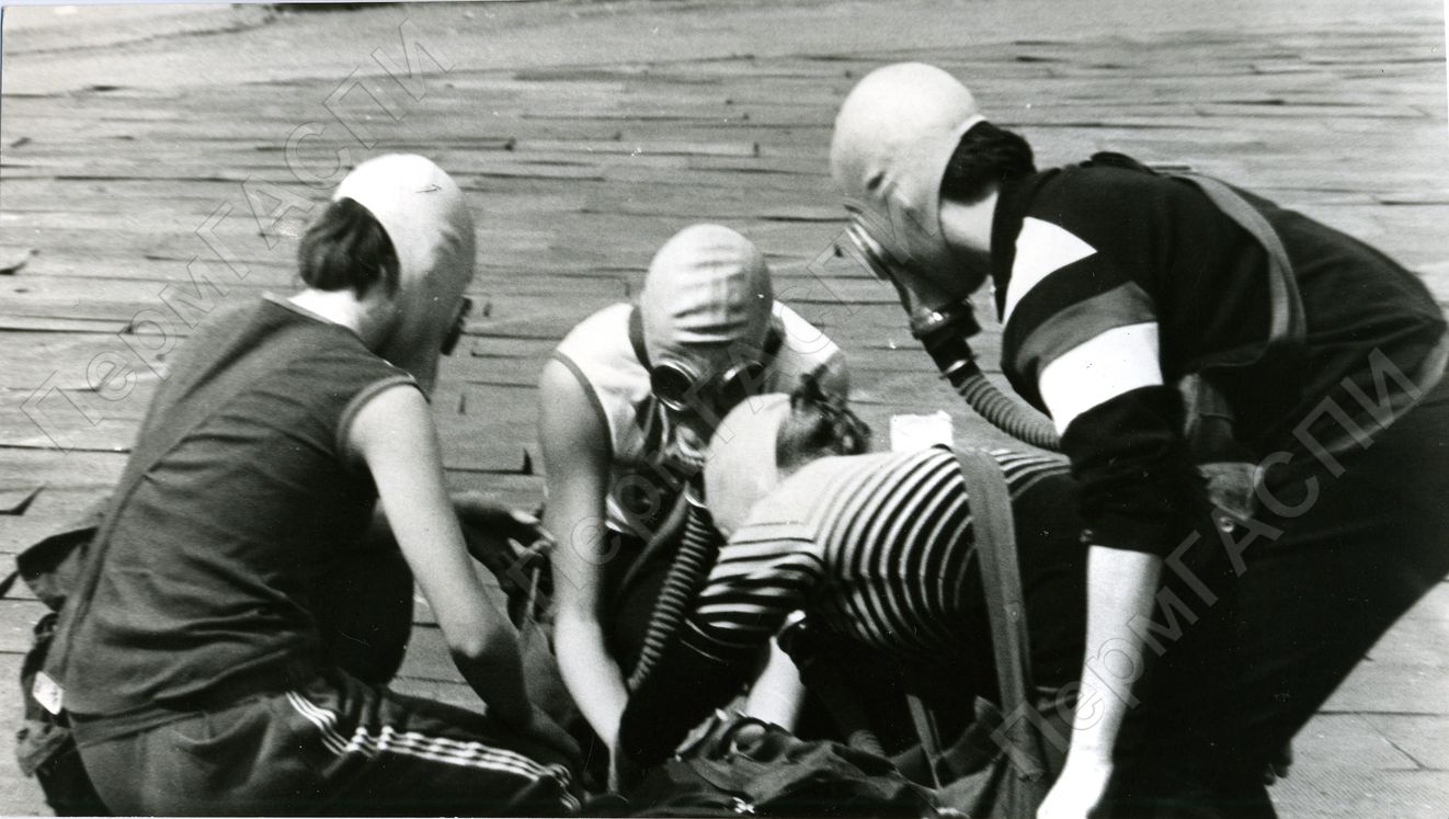 Оказание медицинской помощи в зоне "заражения" на городском финале. Орленок-87.