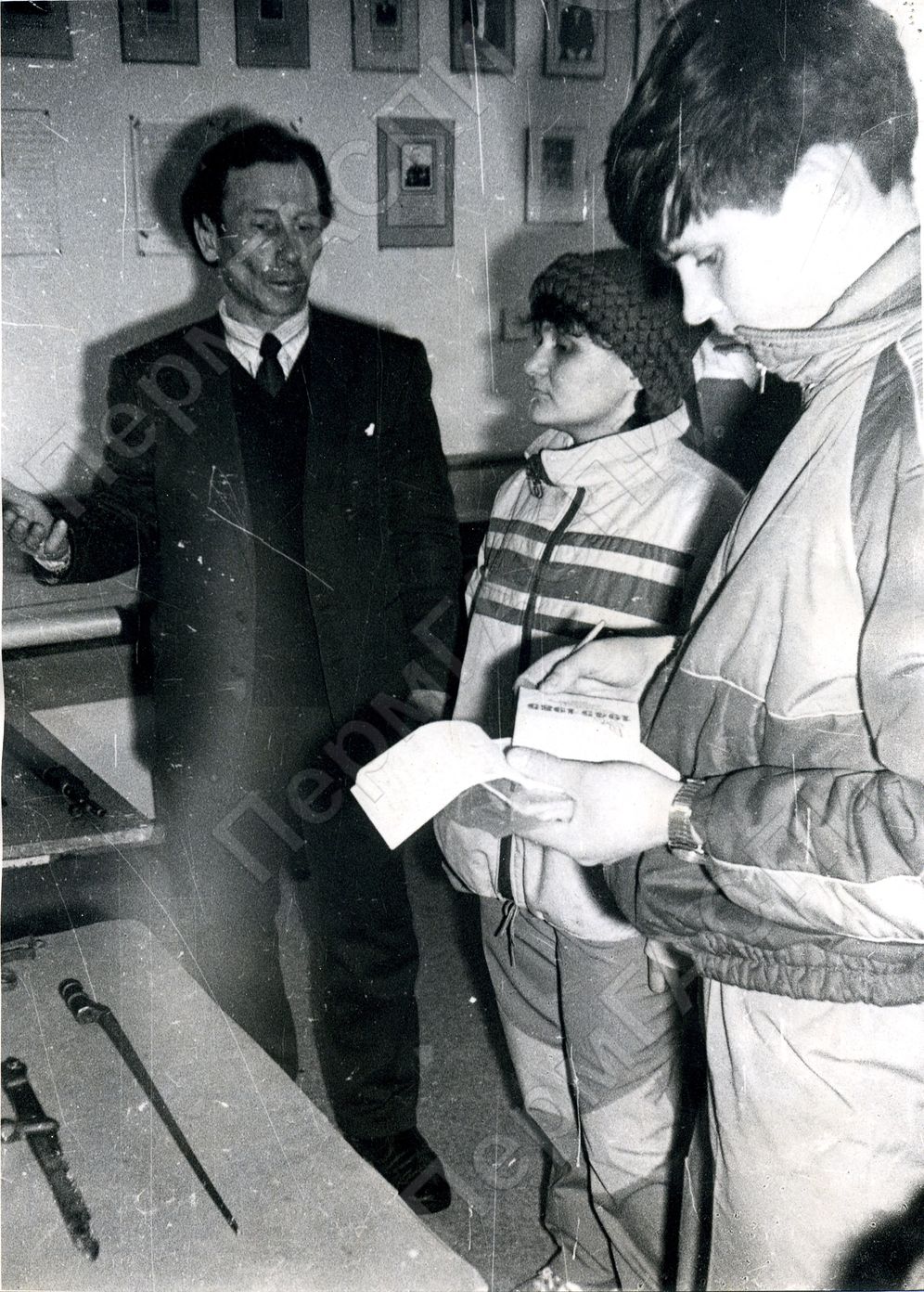 Студенты Пермского государственного сельскохозяйственного института, участники агитпохода по местам боев Блюхера. В музее Блюхера, в Октябрьском районе Пермской области.