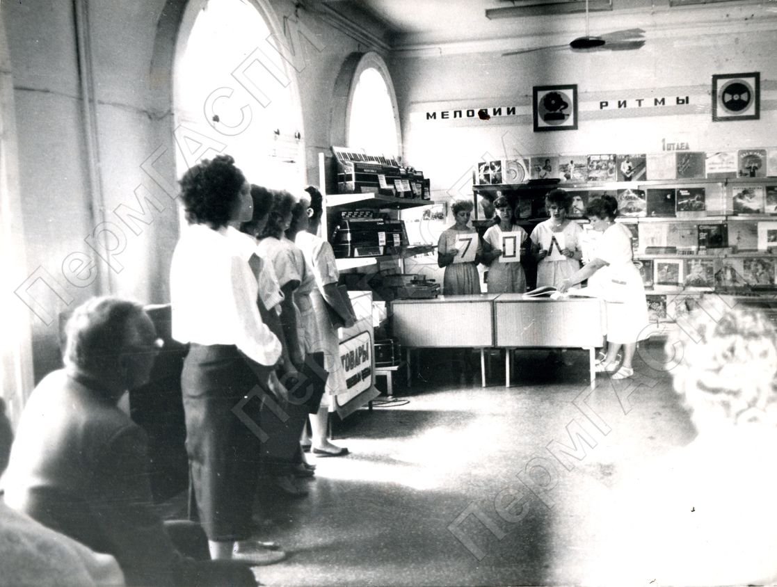 Эстафета трудовых дел среди продавцов в городе Чусовой к 70-летию ВЛКСМ.