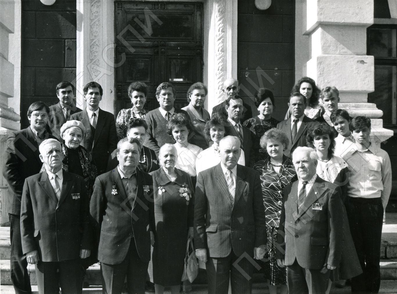 50-летие Кировской районной комсомольской организации. (слева направо) 1 ряд - Полимонов, Пименов, Южакова, Назарин, Ведягин; 2 ряд - Брагин, Полимонова, Быстров, ?, Бояршинова, Шелгунова; 3 ряд - Иртегов, Куркин, Ваганова, Терентьев, Семерикова, Грива, Михалицына, Кочетков.