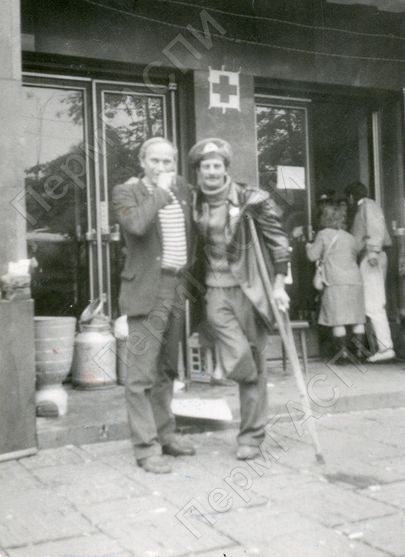 Два сторонника Б.Н. Ельцина возле подъезда № 20 здания Верховного Совета РСФСР