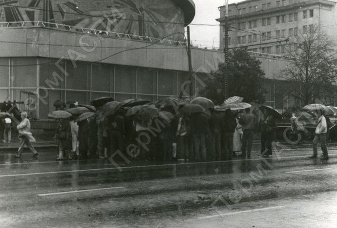 Группа сторонников Б.Н. Ельцина на одной из улиц, прилегающих к зданию Верховного Совета РСФСР