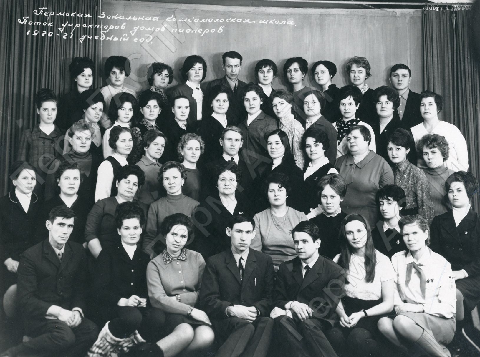 Занятия в Зональной комсомольской школе. Поток директоров домов пионеров, 1970-1971 учебный год.