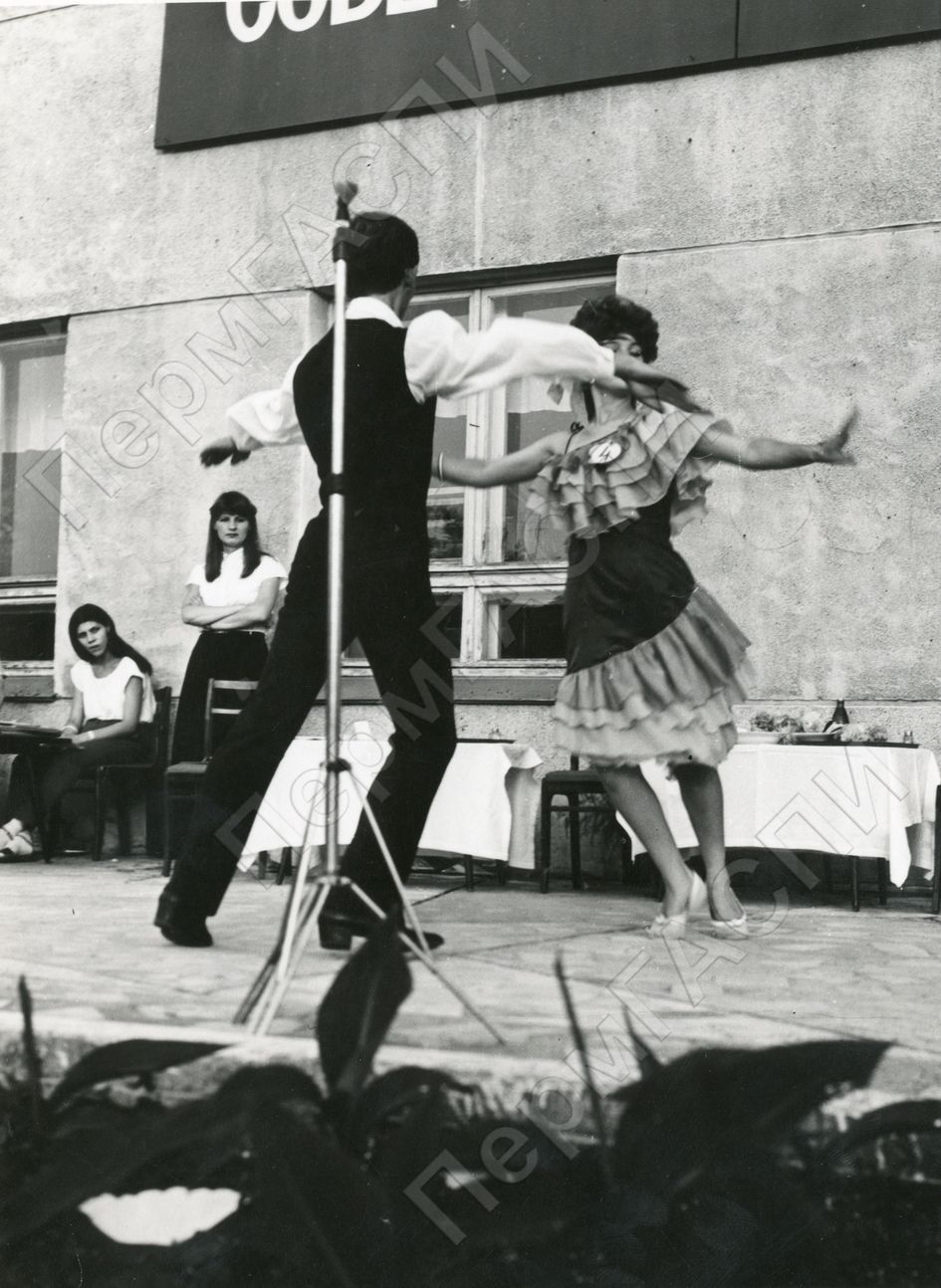 Городской конкурс "А ну-ка, девушки!", посвященный XII Всемирному фестивалю молодежи и студентов, танцует участница команды городского торга Кузьминых Лилия. Танец Самбо