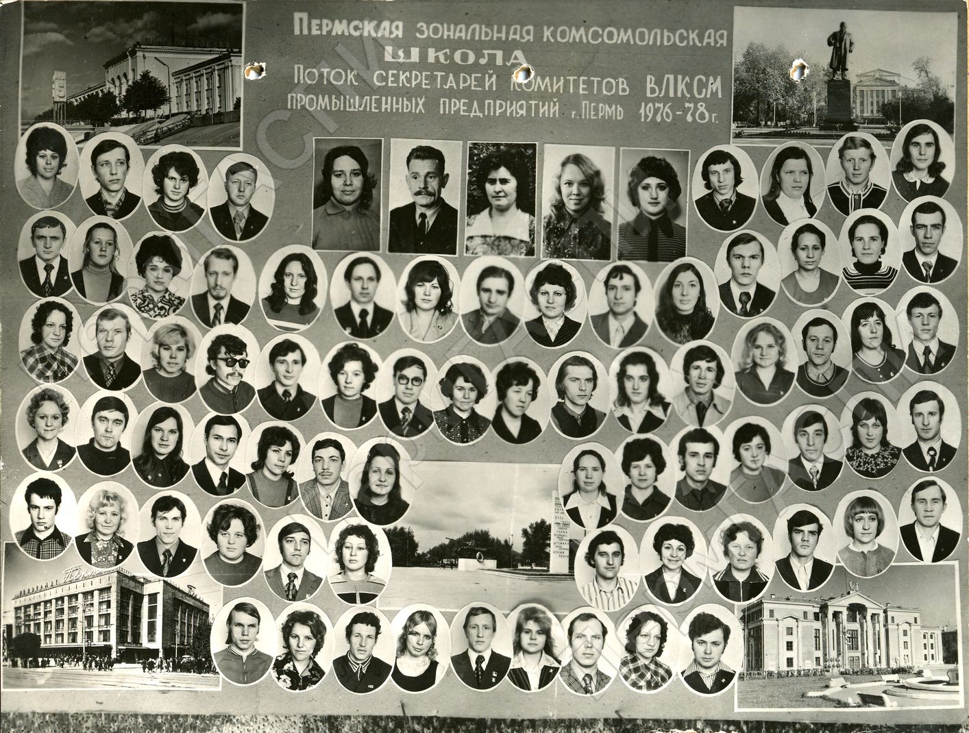 Групповая фотография слушателей Пермской зональной комсомольской школы. Поток секретарей комитетов ВЛКСМ промышленных предприятий.