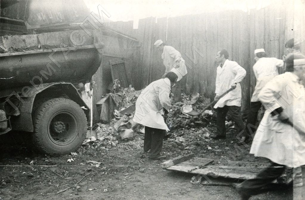 Субботник на зуботехническом отделении. Комитет ВЛКСМ Пермского базового медучилища.