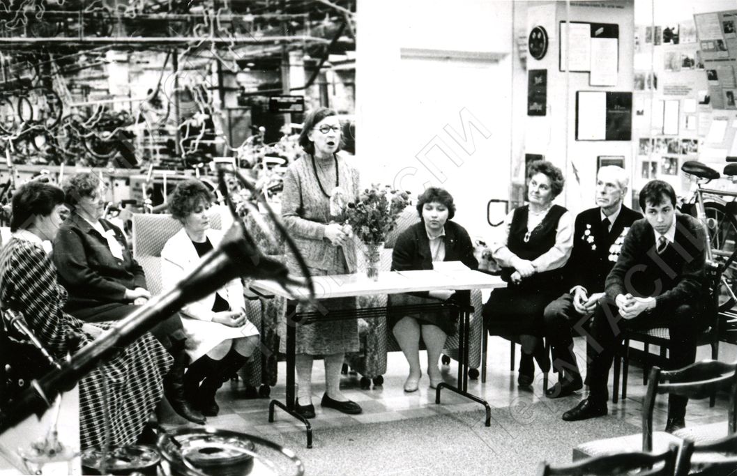 Торжественное собрание в честь дня рождения комсомола в зале собраний музея трудовой славы завода. Выступление ветерана комсомола Пономарева В.Ф.