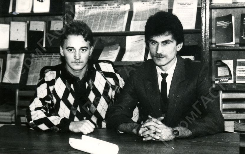 Делегаты 45 районной отчетно-выборной комсомольской конференции. 1. Чайзухин Александр Иванович - делегат от комсомольской организации Кишертского ОВД. 2. Куделькин Юрий Иванович - делегат от комсомольской организации ПНК-15.