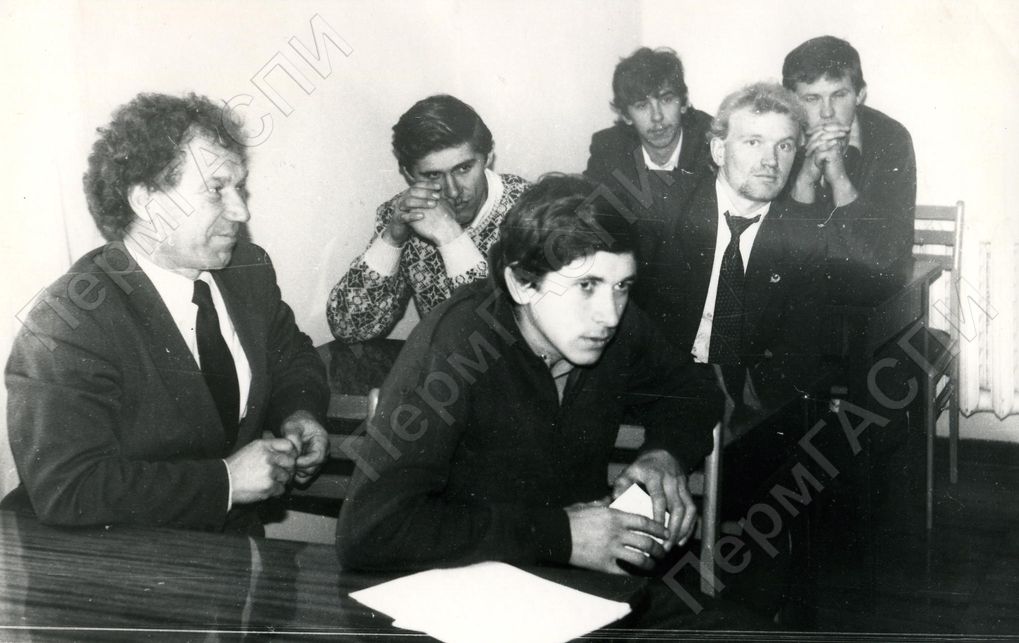 Делегаты 45 районной отчетно-выборной комсомольской конференции. Секция комсомольских организаций колхозов и совхозов. слева направо: 1) Елышин Владимир Максимович - II секретарьКишертского райкома ВЛКСМ; 2) Овечкин Иван - водитель Кордонского Леспромхоза делегат от комсомольской организации Корданского ЛПХ; 3) Ташкинов Михаил Григорьевич - директор Кишерского моизавода, чсен райкома ВЛКСМ; 4) Зеленкин Михаил Андреевич - секретарь комсомольской организации колхоза имени Ленина, член райкома; 5) Лунегов Александр Михайлович - делегат от комсомольской организации колхоза "Шумковский"; 6) Свизев Владимир - трактормст - делегат от комсомольской организации совхоза "Кишертский".