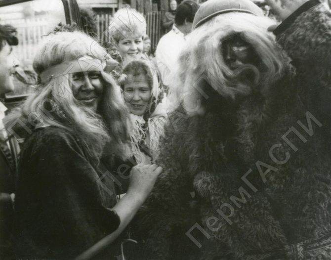 Участие кикиморы и лешего в велокроссе во время фольклорного праздника