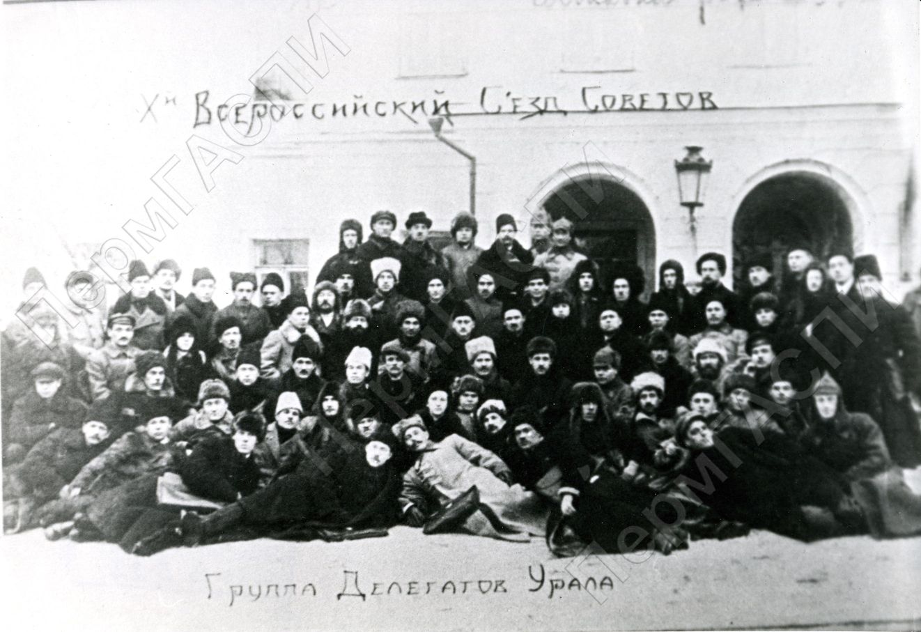 Всероссийский съезд советов. А.Л. Борчанинов в центре делегации Урала.